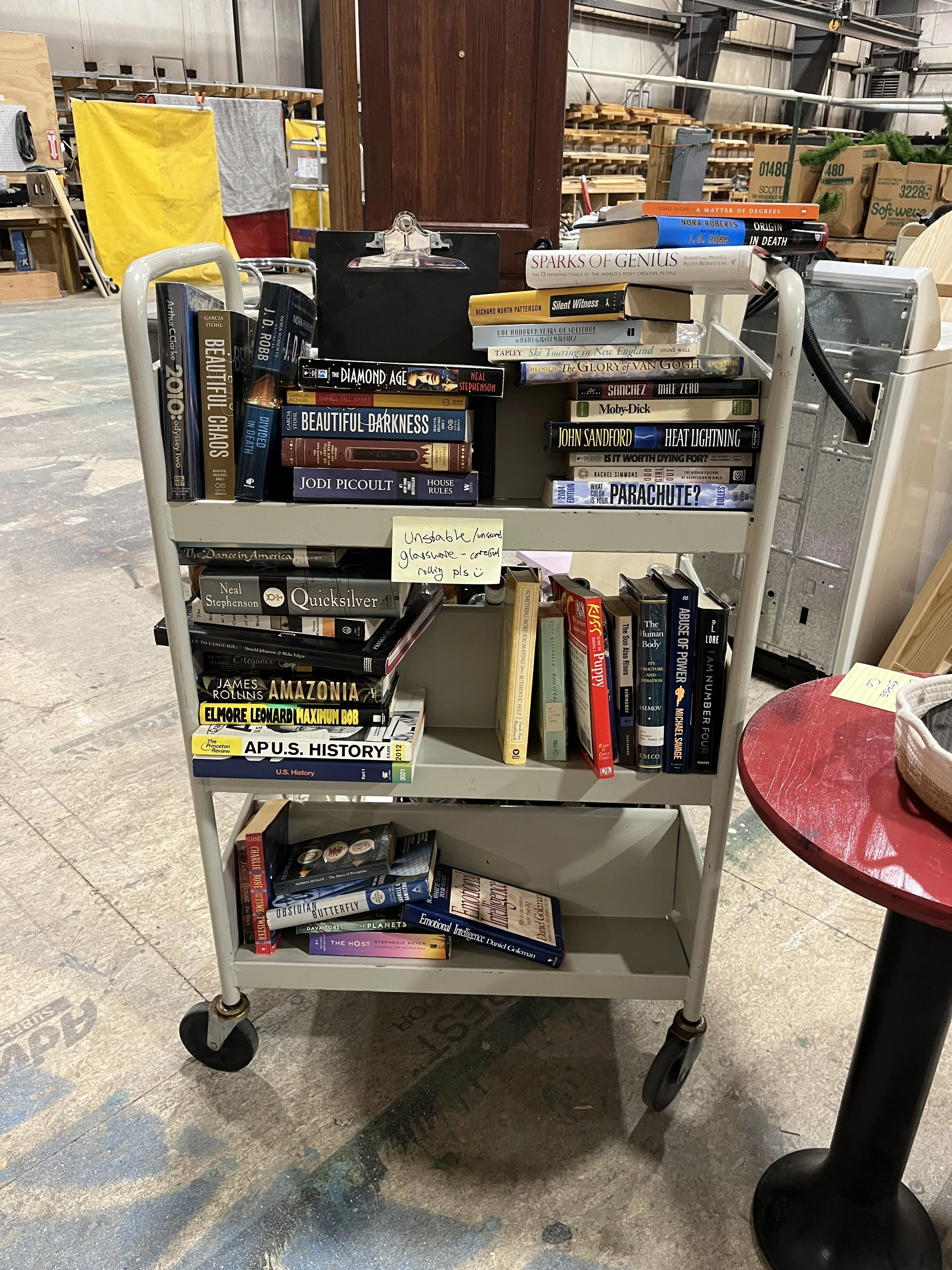 Set Dressing . Set Dressing . Set Dressing . Book/Bar Cart, Pre-Luan Masking Inserts Trick Bar/Library Book Cart- Book Side Trick Bar/Library Book Cart- Bar Side Library Counter Sign Spacing Library/Bar Counter Presets Top Shelf Tolstoy- Bar Mode